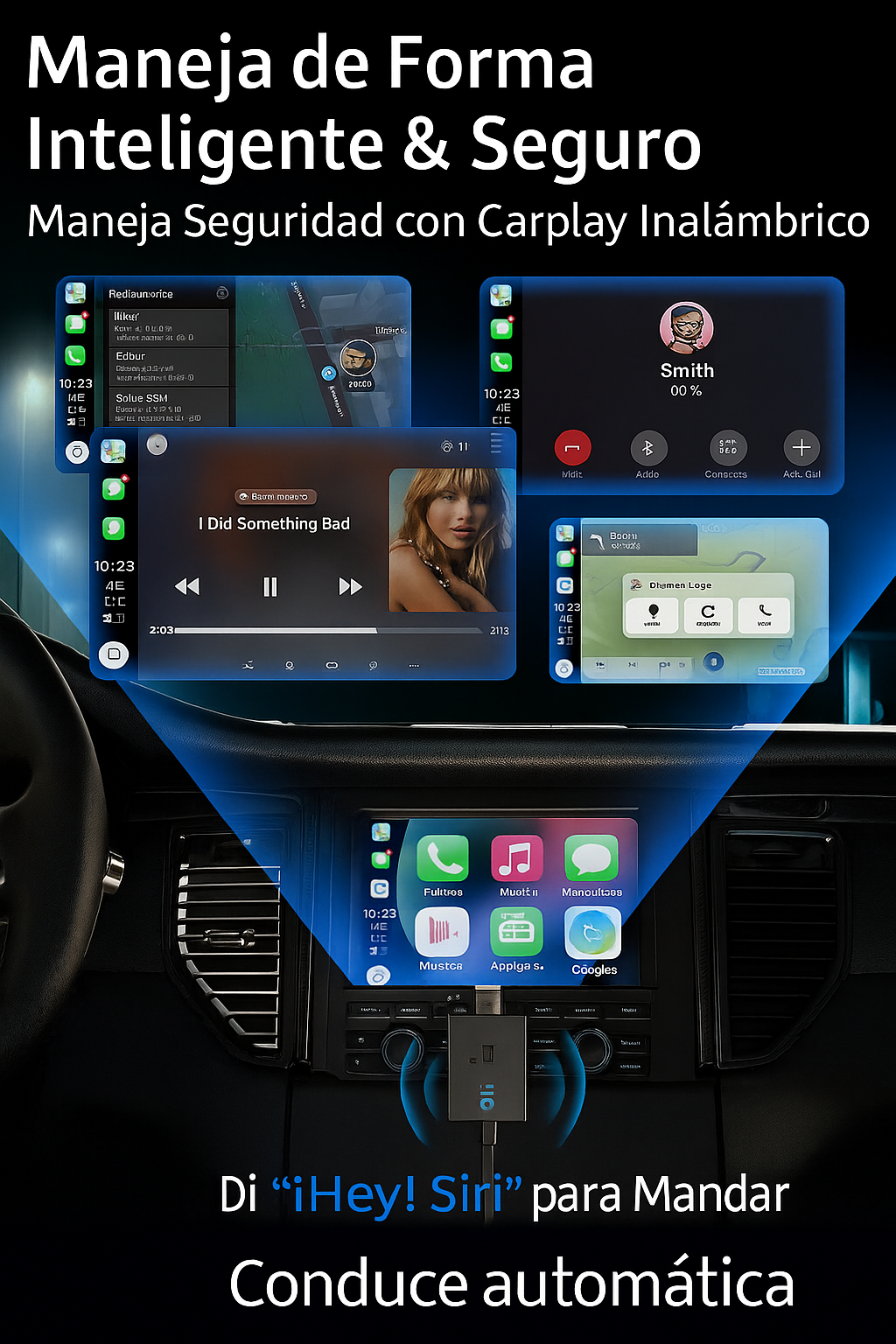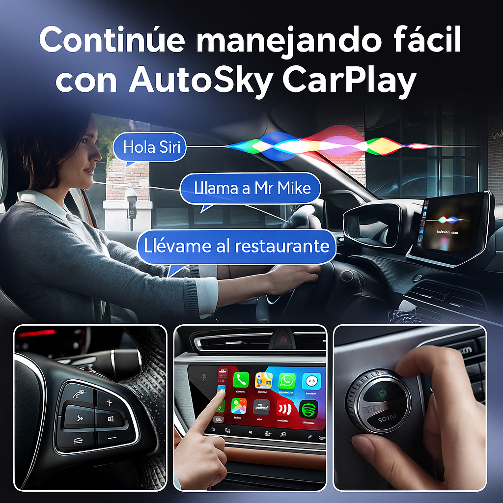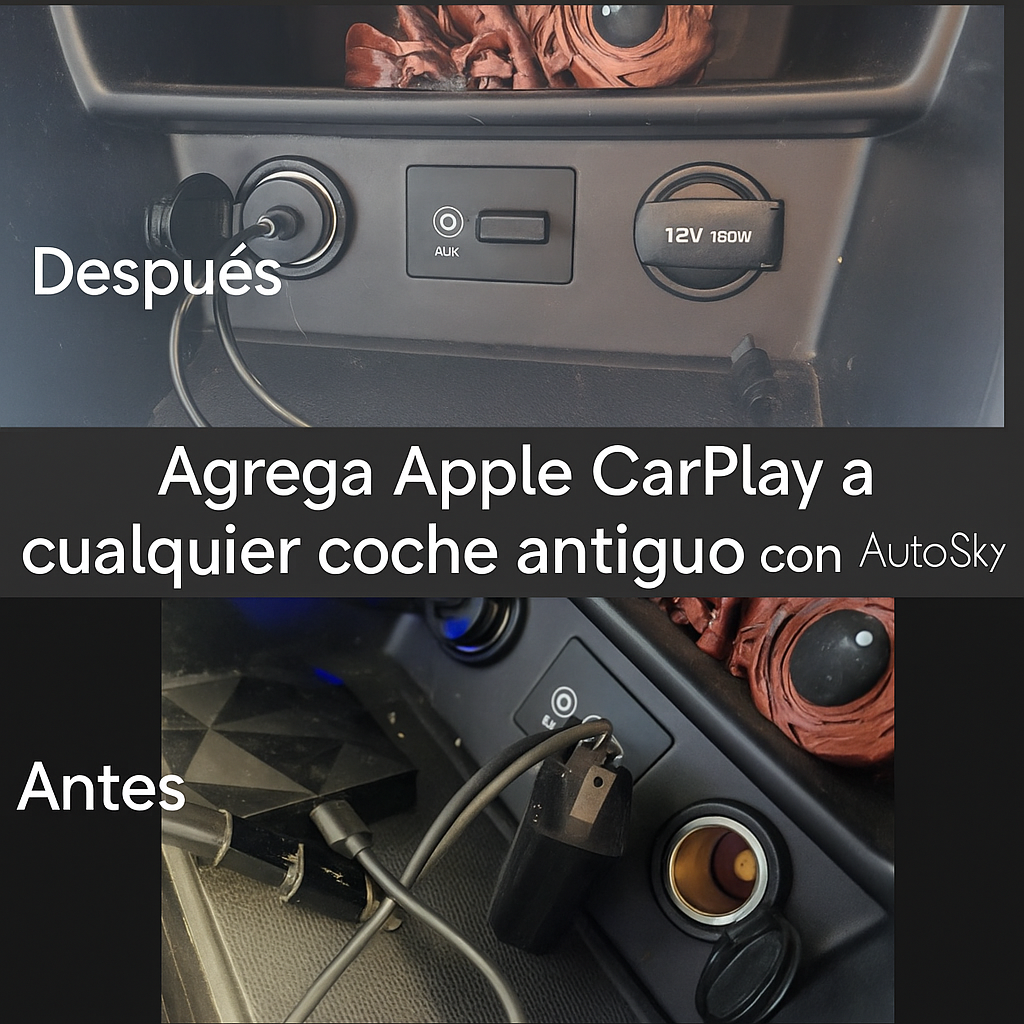 Elimina el lag y el audio saturado con el nuevo AutoSky CarPlay inalámbrico.