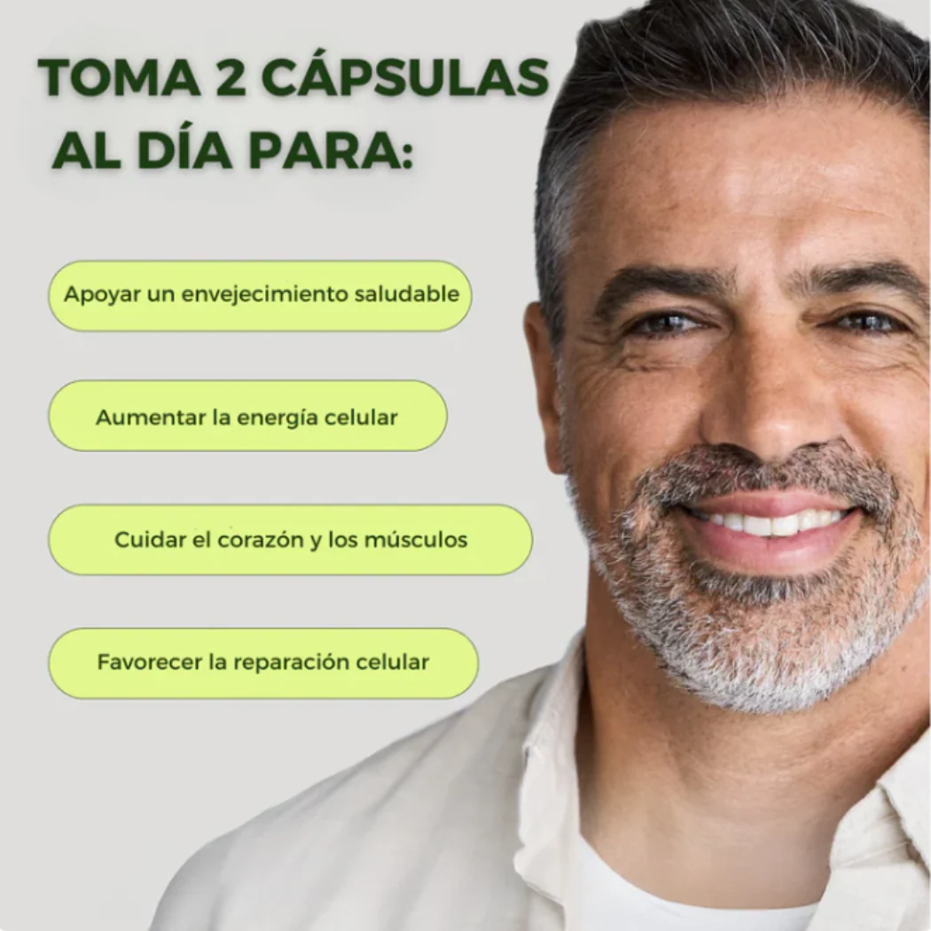 Disfruta energía real, claridad mental y bienestar duradero, con solo 2 cápsulas al día.