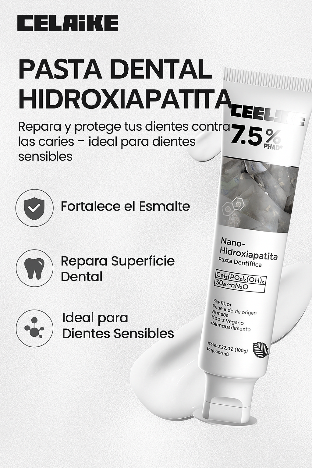 Con CEELIKE, las puedes reparar antes de que causen daño real. Nuestra fórmula con 7.5% de nanohidroxiapatita reconstruye el esmalte y protege tus dientes sin necesidad de flúor.