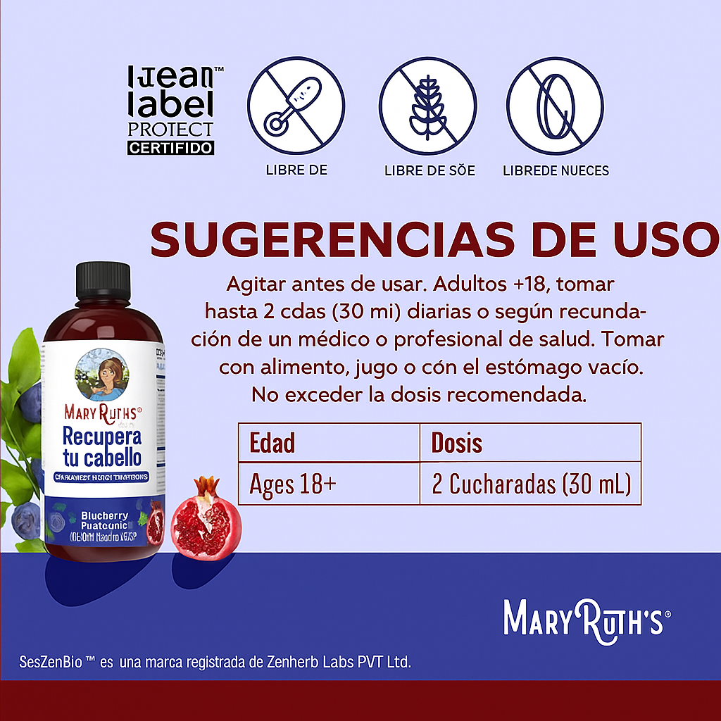 SesZenBio, Biotina y Vitamina C: Combate la caída y estimula el crecimiento capilar.