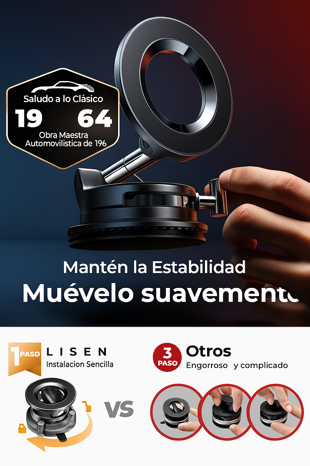¿Has probado 3 soportes que terminan cayéndose? Este sí se queda firme. Succión de vacío real, no solo marketing.